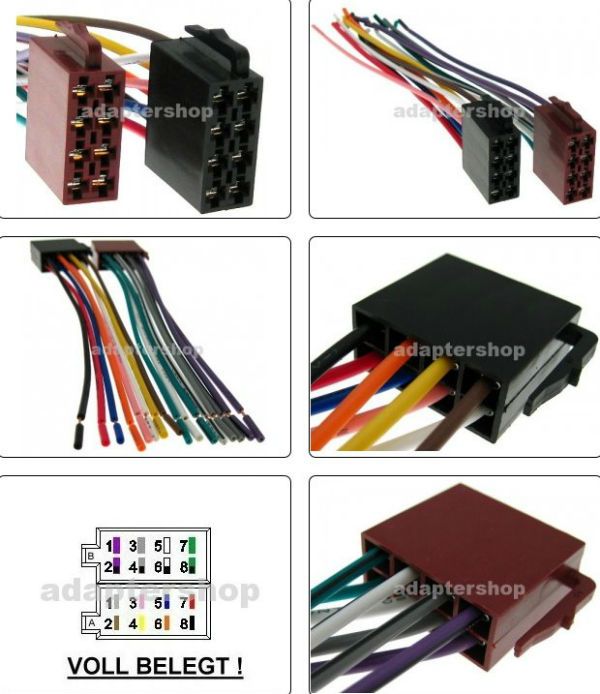 Um das neue Radio an euer Auto anzuschließen gibt es genormte Steckverbindungen. Diese heißen ISO-Anschluss. Die Can-Bus-Adapter bieten eben genau diesen Anschluss. Wie genau die Anschlussbelegung des ISO-Adapter ist, spielt hier keine Rolle. Grob gesagt, es gibt 2 Stecker mit je 8 Kabel. Davon müssten nicht zwangsläufig alle Plätze belegt sein. Die richtige Belegung hat der Hersteller des Can-Bus-Adapters durchgeführt. Hier ein Bild des ISO-Stecker.