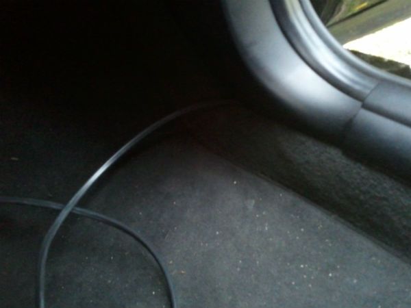 9. Nun geht es weiter unter der Kante im Innenraum. (Kante zwischen Bodenteppich und Türeinstiegsleiste bzw. Seitenteilplastik.) Mit etwas Geschickt schiebt ihr das Kabel nur einfach unter diese Kante bis ganz nach vorne in den Fußraum des Beifahrers.
