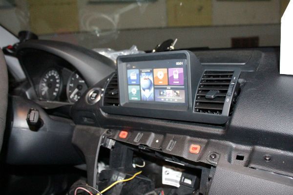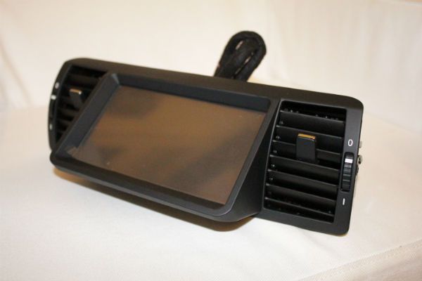 Das Gerät selber besteht aus 2 Teilen: ein Bildschirm mit Touchscreen und ein Laufwerk. Das interessante ist - die Bildschirmeinheit ist mit 2 Lüftungsgittern versehen und kommt an die Stelle der mittleren Lüftungsauslässe ins Cockpit. Der Schirm ist somit schön im Blickfeld ohne zu unnötig lästig zu sein. Das Laufwerk nimmt an stelle des originalen Radios Platz. Ein angenehmer Nebeneffekt = das Ablagefach oben auf dem Armaturenbrett (der einzige Ort zur querbeschleunigungssicheren Lagerung von Brillen) bleibt erhalten.
