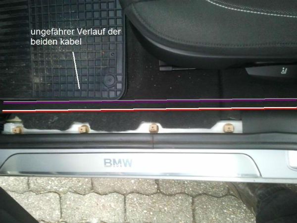 3.wenn man nun den teppich hochklappt sieht man ein kabelbaum an der seite langlaufen, wo man das klebeband entfernen muss welches die kabel zusammen hält