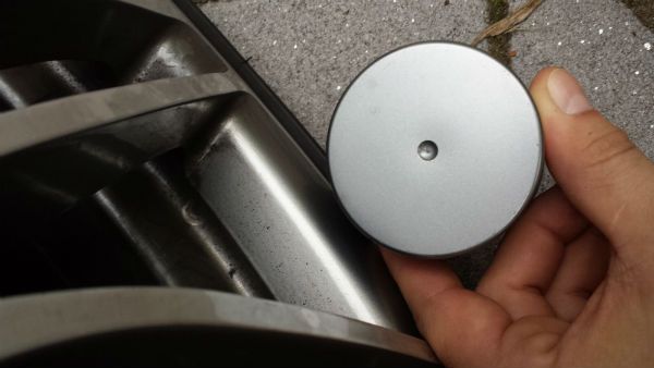 Der Farbton der Schrift ist meinen Recherchen zufolge BMW A80 Ferricgrey. Gottseidank habe ich ja die Performancefelgen, diese sind innen mit entsprechendem Lackiert. Habe mir also im Baumarkt um die Ecke eine Dose Lack gekauft, die dem grau sehr nahe kommt.